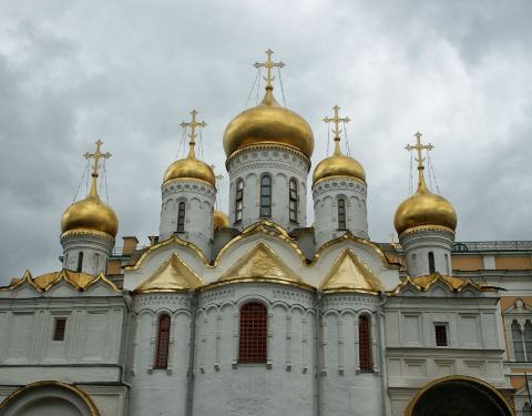 克里姆林宫的教堂广场无疑集教堂的精华于一体,5座不同功能的教堂造型风格各异,分别是圣母升天大教堂、圣母领报大教堂、天使长大教堂、十二使徒教堂和圣母法衣存放教堂。除了这些教堂,在广场周边还可以看到伊凡大帝钟楼、沙皇炮和沙皇钟