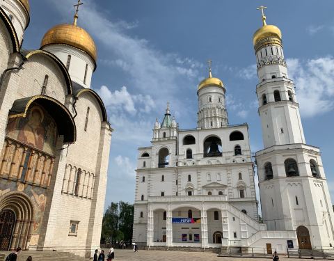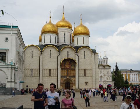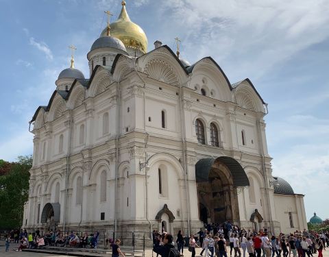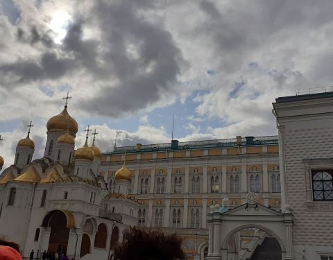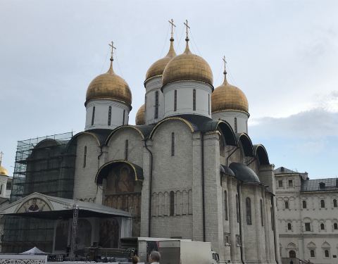 这里的大教堂广场指的是克里姆林宫内的教堂建筑群广场,经过严格的安检进入到克里姆林宫内,就会看到好多金顶的教堂,阳光下金顶闪闪发光极富感染力。