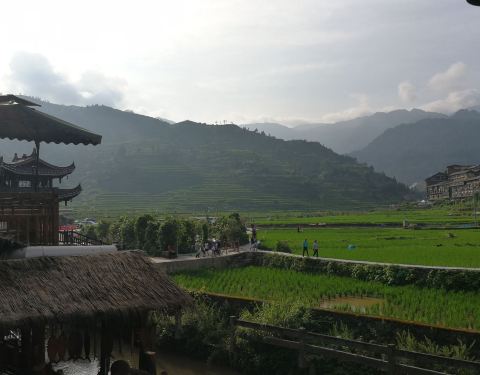 田园风光主要是在一号风雨桥那里。 在山上观景台那里,可以远看田园风光
