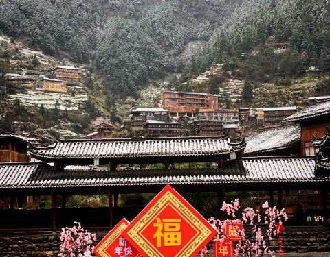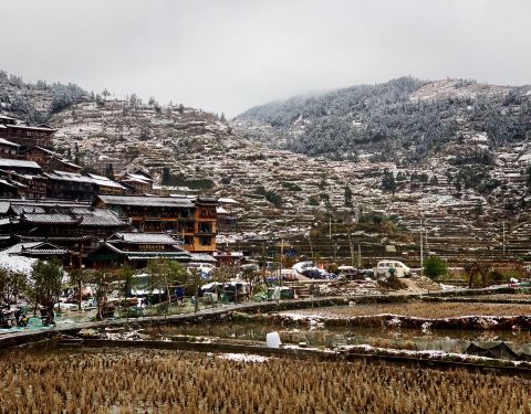 这个没有翠绿的田园风光也展现出不同平日的气息!除夕的时候进到了寨子,苗寨的夜真的是让人迷醉除夕的时候进到了寨子,苗寨的夜真的是让人迷醉!一夜的大雪装扮苗寨另一种景象!漫山遍野的雪白让苗寨的楼子格外的分明!这个没有翠绿的田园风光也展现出不同平日的气息!