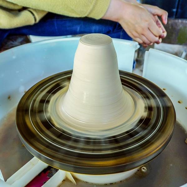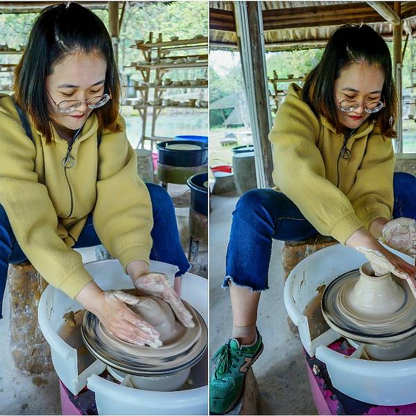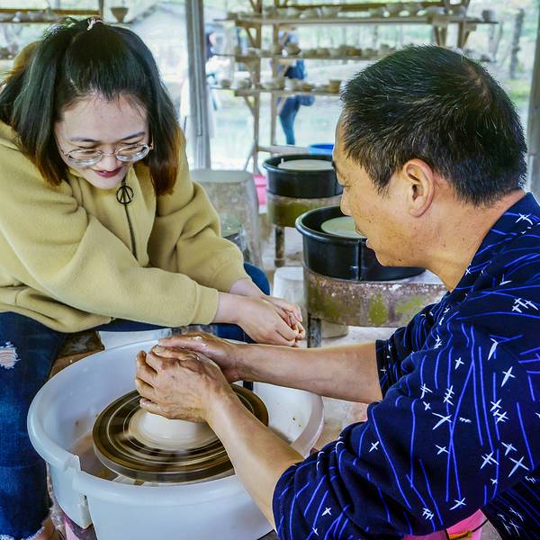 光听还觉得不过瘾的话,你也可以花20元亲自体验一下拉坯的过程,