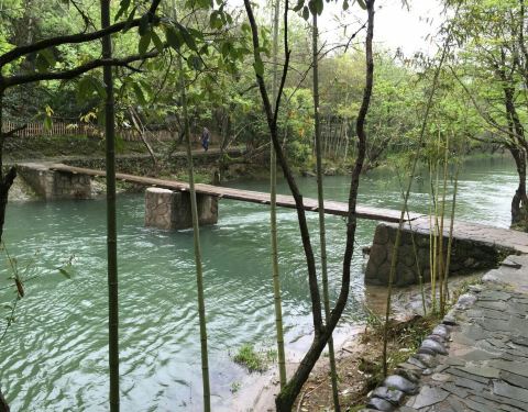 要去看古窑遗址要走过不到1米多宽的没有护栏的木板桥,我极其小心地走过。这里也可以,价钱也便宜