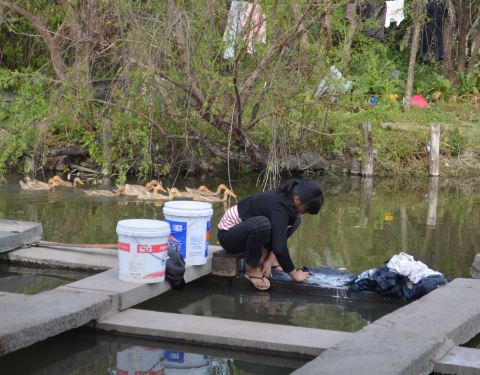 和顺洗衣亭有几处,靠近大门和湿地的因为有鸭子和鹅的活动显得十分有趣