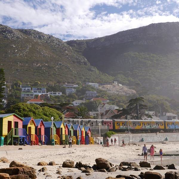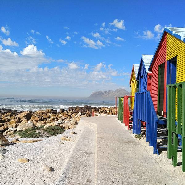 感觉 开普敦 有一种让人心旷神怡的力量 沿着海滨路一直向南开 心情不知不觉地就特别好我们的第一站是Muizenberg海滩 想来这里看看是因为海边有一排五颜六色的房子五颜六色的房子们静静的躺在白色的沙滩上 这时候正好有一辆也是五颜六色的火车开过去有一群幼儿园的黑人小朋友也来这里玩耍而旁边还有一个孤独的白人宝宝和孤独的海鸟 展开