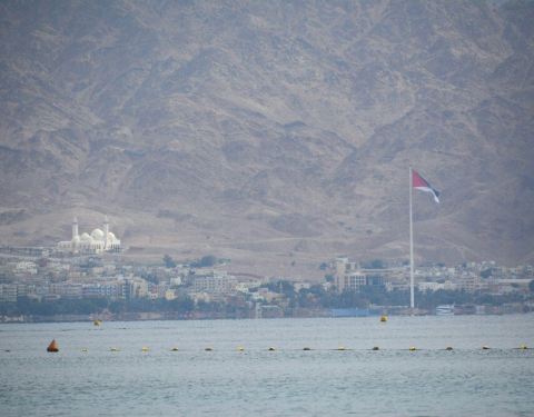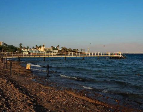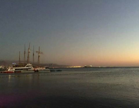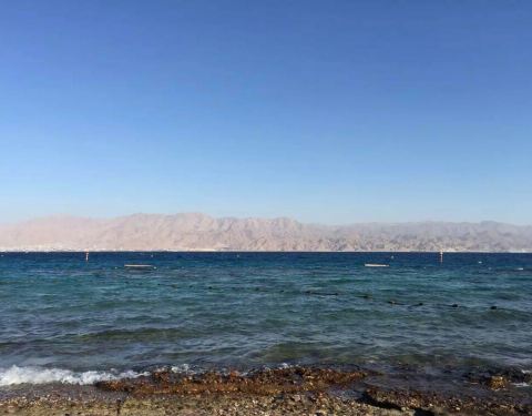 埃拉特的红海对岸就是约旦的亚喀巴,约旦的国旗清晰可见。