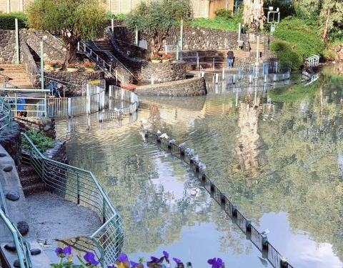 约旦河洗礼处,天气挺冷的,和上海温度差不多,洗完的人都一脸幸福约旦河洗礼处,天气挺冷的,和上海温度差不多,洗完的人都一脸幸福.这里的约旦河算比较宽了[捂脸]厕所要两个谢克尔,没零钱没上,有个纪念品商店,好像比昨天的纪念品商店便宜点 2018-10-26 16:36