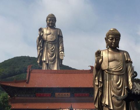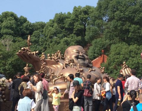 灵山的景点比较新,每个地方特别是室内都是建得金碧辉煌,很炫目,营造出神圣的气氛,让人不由得顶礼膜拜。