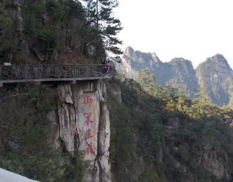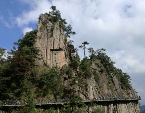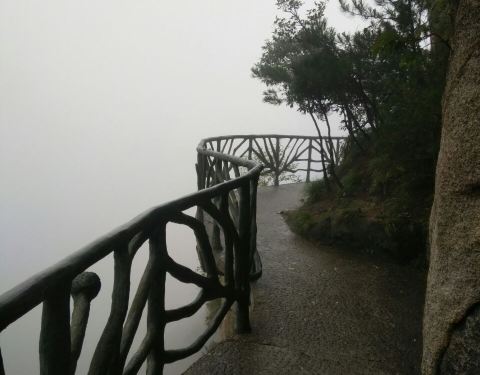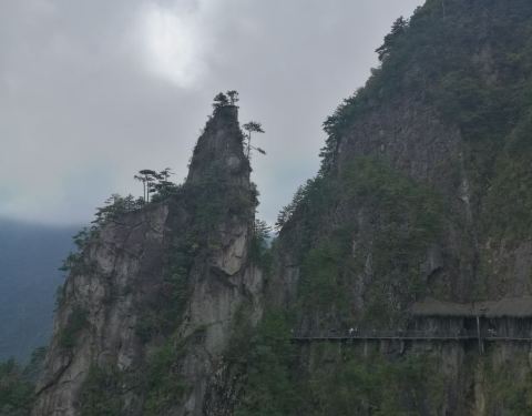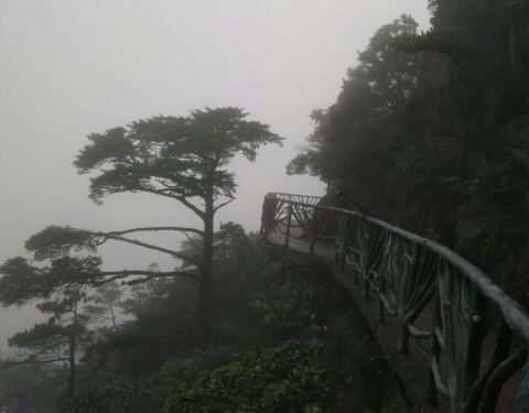 最喜欢这个悬空栈道了,很平坦,走着不会太累呢,而且风景会很好,而且感觉挺刺激的呢,可惜今天有雨,雾太大了,不然风景一定会更美哦!