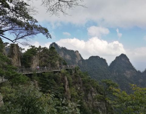 大明山悬空栈道是大明山的一大特色,全长1200米,紧贴山体悬崖边,视角非常刺激,走起来也不是很累,在栈道上可以远眺远方,视角很好。