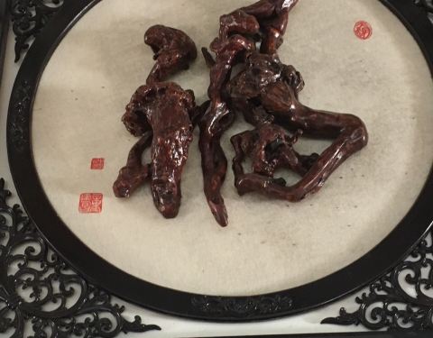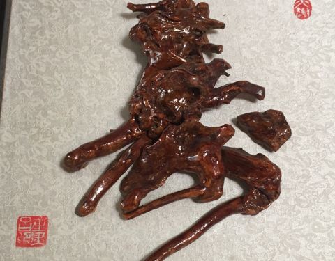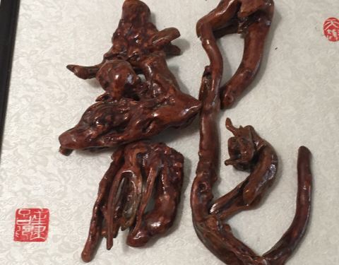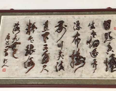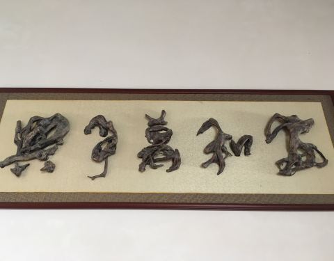 ...个洗手间附近,说是洗手间,其实外面有阳台可以观景,室内还有桌椅供休息,还有一些根雕字很有观赏性