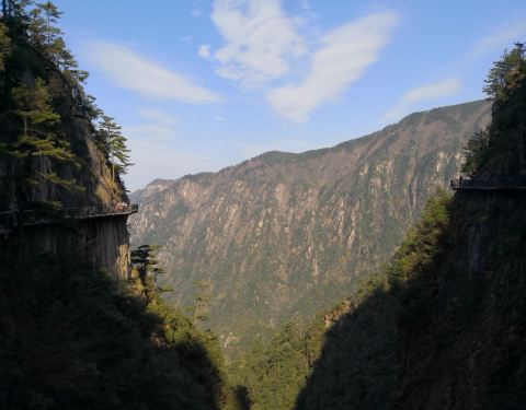 很不错的景点,悬空栈道名副其实,站在上面边走边欣赏沿途风景,路面平坦,走着不累,就是心脏不好,恐高症的不要去走,总体来说不算惊险。