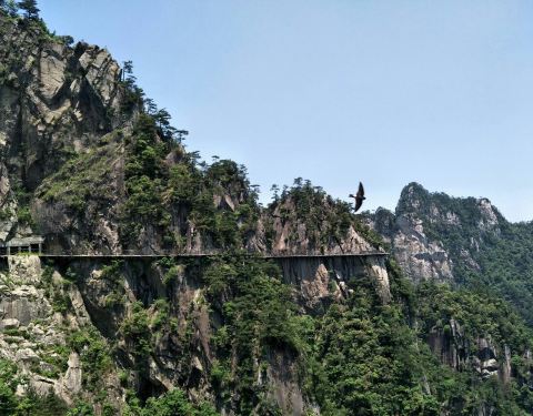栈道紧贴山体绝壁,往下看就是万丈深渊,恐高的游友们千万注意了,要贴山体、直视前方而行杭州临安的大明山悬空栈道还是挺有名的,被称为仙境秘道,我们是6点30分爬山,8点多到达,这时候山间云雾缭绕,山色空濛,层峦叠翠,山谷幽深,溪涧奔流,景色一绝,不愧为“浙江小黄山”之美誉! 栈道紧贴山体绝...杭州临安的大明山悬空栈道还是挺有名的,被称为仙境秘道,我们是6点30分爬山,8点多到达,这时候山间云雾缭绕,山色空濛,层峦叠翠,山谷幽深,溪涧奔流,景色一绝,不愧为“浙江小黄山”之美誉! 栈道紧贴山体绝壁,往下看就是万丈深渊,恐高的游友们千万注意了,要贴山体、直视前方而行。栈道长约1200米,从栈道上放眼望去,大明山的景致一览无余! 展开