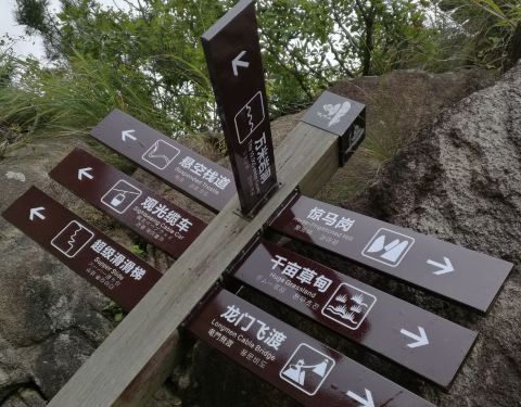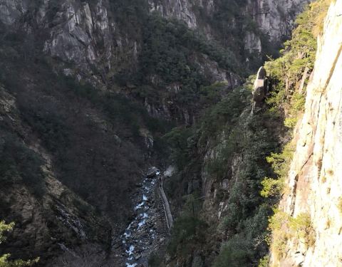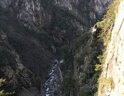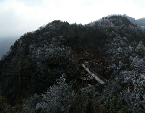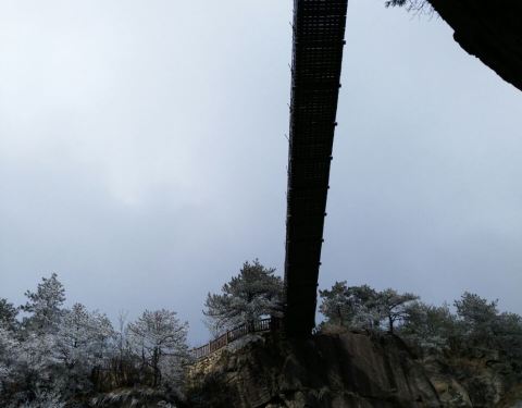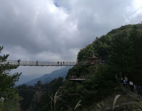 从大明山大门进入后,需要做景区接驳车到上山步行道,一路往上爬就行。恐高的网下看会有点怕怕~