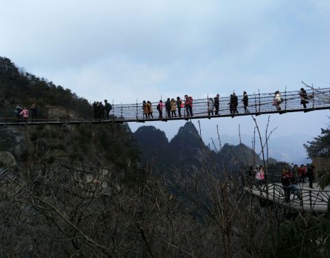 走龙门飞渡索桥,恐高的游友们,慎重!!!走过去,一直摇摇晃晃,心惊胆战,脚下就是万丈深渊,你走过去的时候,会有一个人持照相机拍摄,想要照片留念的你,请摆好pose来一张,等下山经过景区门口时候,你的照...