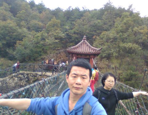 走龙门飞渡索桥,恐高的游友们,慎重!!!走过去,一直摇摇晃晃,心惊胆战,脚下就是万丈深渊,你走过去的时候,会有一个人持照相机拍摄,想要照片留念的你,请摆好pose来一张,等下山经过景区门口时候,你的照片会被洗印出来张贴在墙上,如果你想要,15元/张,不算贵哦!我自留了一张。
