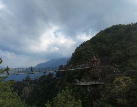 龙门飞渡索桥,是架在两个悬崖只上的一座索桥,站在上面可以看到非凡的美景,桥下就是一条绵长的瀑布,十分惊险刺激!来大明山一定不能错过此桥!