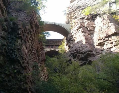 苍岩山。苍岩山有"三绝"、"十六景"。三绝:一、桥楼殿,凌於百仞峭壁之间。颤巍巍俯身万丈深渊之上悬空而建。一说桥楼殿较之趙州桥光阴尚早,一说悬空寺位列中国悬空寺TOP:2。