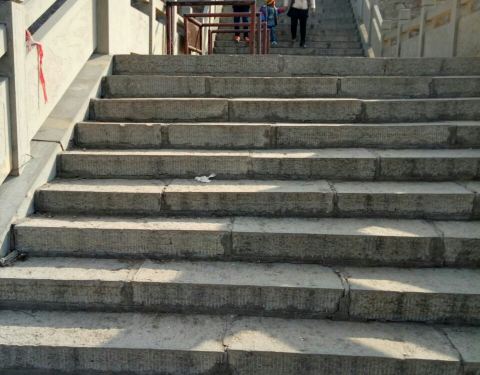 ...景区大门不远,会有一段长长向上的台阶路,最末一段还比较陡,在这段道上就可以看见桥楼殿悬在头顶上