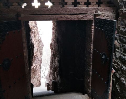...景区大门不远,会有一段长长向上的台阶路,最末一段还比较陡,在这段道上就可以看见桥楼殿悬在头顶上进苍岩山景区大门不远,会有一段长长向上的台阶路,最末一段还比较陡,在这段道上就可以看见桥楼殿悬在头顶上。