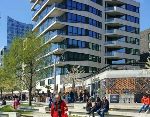 汉堡的新城区一处景观,这个沿着河岸的时尚街区,好多的奢侈品店铺也是可以看到,街道环境也是蛮好的,很多的大玻璃窗的店铺都是很有的哦。