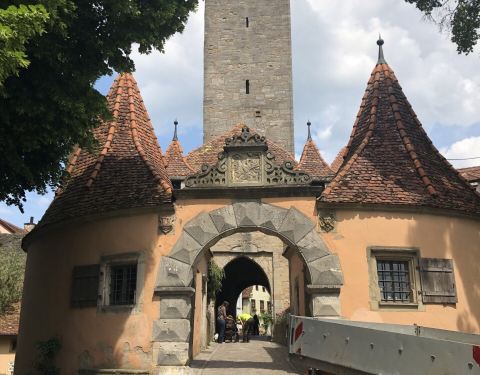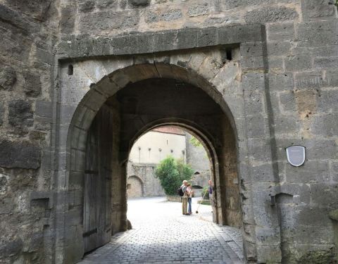 罗腾堡在10世纪的时候就围绕整个小城修建了碉堡,游客一般都是从离火车站最近的东门进入罗滕堡,然后从西门出去看一看城堡花园。这两处都很好的维持了当年的城门的原貌,连接几处城门之间是围绕罗腾堡一圈的围墙,可以免费登上城墙在上面散步,感受中世纪的风貌。