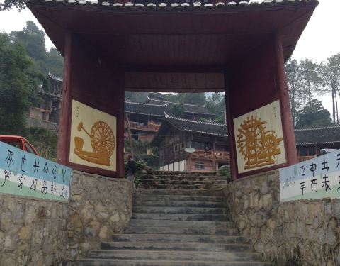 从高速公路都匀口下来,问收费的并不知道这个榔木水寨,我们顺着百度导航“榔木寨”一路穿过几个小镇、修建公路的工地,在一个小弯道突然看见这个寨子的蓝色小牌,整个寨子没有商业气息,这是我们想要的氛围-原生态。