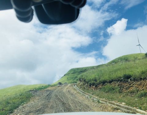 山路还好走,湾多,山顶上风景很棒,随手一拍都是大片,风车在牌坊前面路左拐上去,路边风景很美,文...