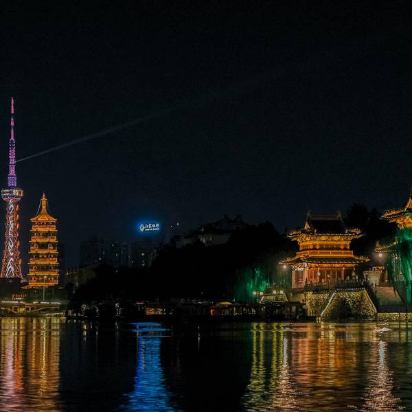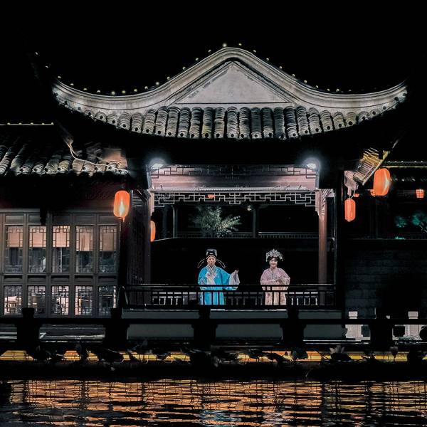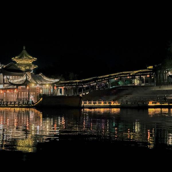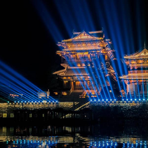 “夜游”不愧为凤城河游览的精华,初秋的凉风习习,水面上尽是斑斓的彩灯倒影,这样的舒适时光,令人...从古月楼出来,在桃园码头坐上画舫游船。白天的时候就看到水面上有很多黄色的鸭子船,可爱又复古,但是由于是一个人,觉得一人一条船太过奢侈,想想作罢。画舫游船,数十人一艘画舫,约莫能坐下二三十人,我顺利...从古月楼出来,在桃园码头坐上画舫游船。白天的时候就看到水面上有很多黄色的鸭子船,可爱又复古,但是由于是一个人,觉得一人一条船太过奢侈,想想作罢。画舫游船,数十人一艘画舫,约莫能坐下二三十人,我顺利地坐在了窗边,凤城河旖旎夜景一览无余。“夜游”不愧为凤城河游览的精华,初秋的凉风习习,水面上尽是斑斓的彩灯倒影,这样的舒适时光,令人快乐上头。游览的路线是沿着凤城河两岸的景点:望海楼、梅园、桃园,巡游线路为环线,最后返回桃园游船码头。行经凤城河,在古建筑物前停下,戏曲腔调的咿咿呀呀声,隔着水面传入耳中,曲调婉转,与身后的建筑仿佛一幅古画。 展开