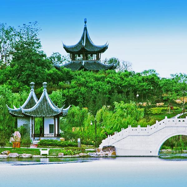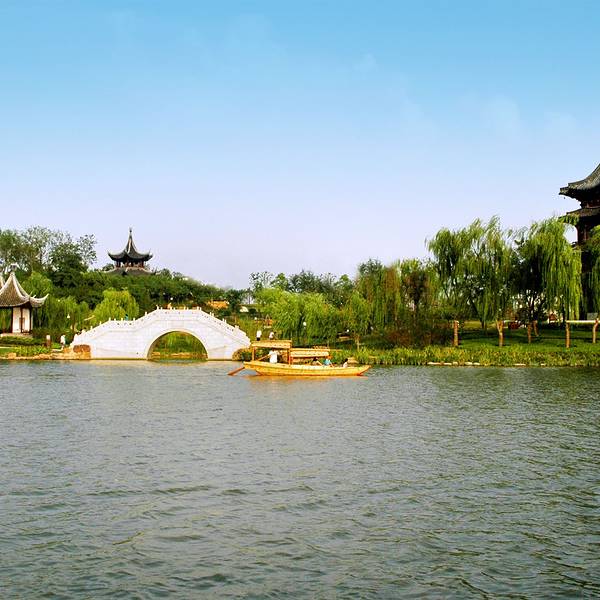桃园是为了纪念清代戏曲家孔尚任在泰州写作《桃花扇》而建的主题公园桃园是为了纪念清代戏曲家孔尚任在泰州写作《桃花扇》而建的主题公园。园内有桃树千棵,倘若在盛开期,满园春色的美景让人流连忘返。因为是再现《桃花扇》的场景,园内亭台楼阁、水榭码头、石桥石舫等等,无一不...桃园是为了纪念清代戏曲家孔尚任在泰州写作《桃花扇》而建的主题公园。园内有桃树千棵,倘若在盛开期,满园春色的美景让人流连忘返。因为是再现《桃花扇》的场景,园内亭台楼阁、水榭码头、石桥石舫等等,无一不体现江南园林之秀美。几近傍晚十分的桃园里游客极为稀少,仿佛有包场之感。登上清风阁,坐在门槛上吹风而不必担心是否会有人来打搅。 展开