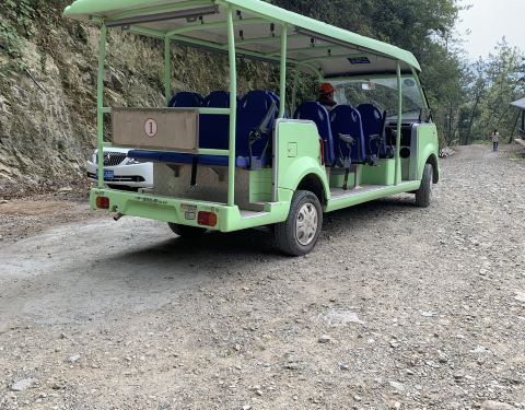 也相对成熟一些,有观光车可以坐到半山腰,再走上去是玻璃栈道,最后转一圈坐玻璃滑道下来