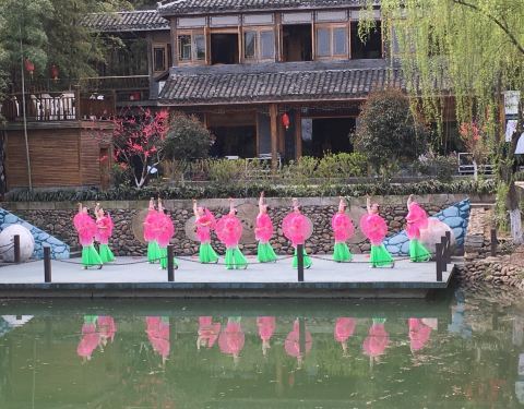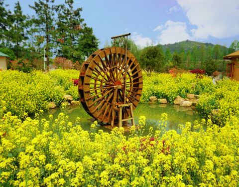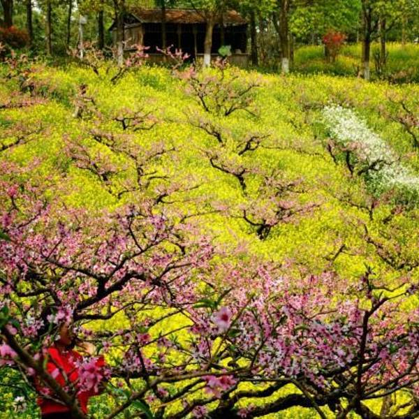清明当天去的,开车游客很多,建议在刚开始堵车的时候就直接把车停路边,再步行进景区也不是很远。里面景色真的是美,值得一游,另外三月二十几号去估计更好,因为清明几乎桃花都谢了,但是油菜花和映山红开的也很美,茶园景色也不错,唱采茶歌的阿姨们也很美