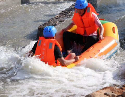 昨天去的,刚好今年端午放假三天,带着孩子一起去了城山沟,上午到那快10点了 天气稍稍有点热,买了门票进景区,导游给我们指了采摘区域,孩子太开心了 采到一个红的 就要吃 边上有个水沟 不知道是不是山泉水 反正挺凉快,树上刚采下的桃子确实新鲜,味道号好 可惜吃了两个实在吃不下了 不然真想多吃几个 反正门票里含了畅吃的,采桃子时间过的就是快,不知不觉就中午了 在景区游客服务中心对面的桃源山庄农家乐吃了中饭,味道不错,特别是那个桃花鸡 鸡汤真鲜 孩子都忍不住喝了两碗,吃过中饭,时间还早,问了服务员不,边上还挺有什么好玩的 推荐了我们南山漂流 按照导航开车过去 十来分钟就到了小孩子对于玩水总是特别开心的 漂流全程一个多小时 昨天人有点多,稍微排了会队。哎 ,唯一失误的就是昨天出来没打算漂流的 没带换洗的衣服 玩水湿了之后 没办法 只能回家再换个了 还好 昨天天气热 衣服湿了正凉快 。整体来说 采摘加漂流 一套天时间刚刚好 采摘完有桃毛 漂流刚好洗个澡