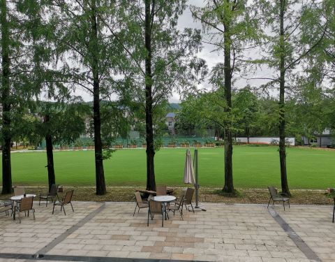第二天一早在公鸡打鸣中醒来 在度假村周边走走 对面的大草坪很养眼 山顶空气非常新鲜