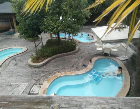 去的时候2点左右,人还是比较少,里面风景不错,温泉泡的很舒服,室内有个大泳池,外有6.7个室外泳池,而且有茶水和小饼干,总体不吃。