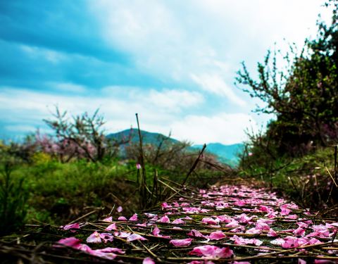 一直听说这里的桃花非常美,春光明媚的周末来到阳山畈村,可能是前几天下雨,桃花打落了不少,桃花谷...