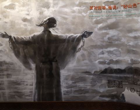 漫步宁波 张苍水故居 故居坐落于鼓楼以北的中山公园中心地带,建筑和展品无甚可观之处,倒是主展厅...漫步宁波 张苍水故居 故居坐落于鼓楼以北的中山公园中心地带,建筑和展品无甚可观之处,倒是主展厅内那占满整墙的壁画让我心折。画作描绘了张苍水坎坷传奇的一生——为了反抗异族入侵,手无缚鸡之力的年轻书生毅...漫步宁波 张苍水故居 故居坐落于鼓楼以北的中山公园中心地带,建筑和展品无甚可观之处,倒是主展厅内那占满整墙的壁画让我心折。画作描绘了张苍水坎坷传奇的一生——为了反抗异族入侵,手无缚鸡之力的年轻书生毅然投笔从戎的书生,即使屡败屡战,即使面临死亡,亦不过淡淡感慨一声“好山色”[玫瑰] 在杭州我也拜谒过张仓水先生的祠堂和坟墓,深深体会到作为民族脊梁,无论杭州或是宁波,当地人凡事是谈起仓水先生,无不引以为傲。 展开
