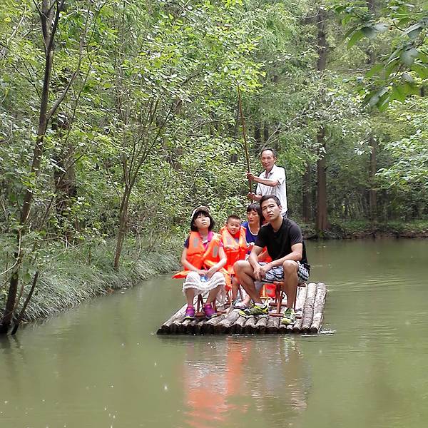 非常的原生态,天然的森林氧吧,感觉很好,小竹筏,在水上林间穿行,两旁是密密麻麻的杉树林,伸手就可以碰到荷叶,还不时从桥下穿过。上岸后来到衫林石斛,看到了雾蒙蒙如同仙境的杉树林,还看到了长在衫树上的石斛。石斛是一种名贵中药材,这里是它的一个种植基地。来这里其中的乐趣是无穷的,很好,以后有机会再来的