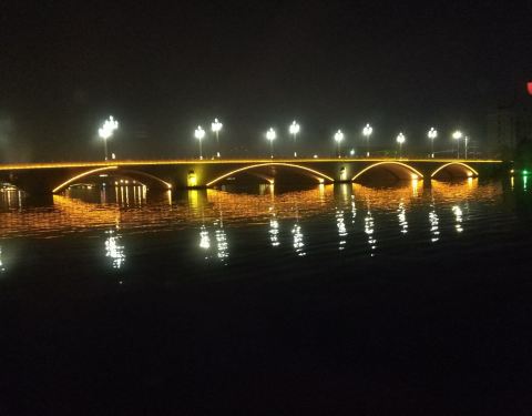 凤城河的夜景很漂亮,晚上灯光璀璨夺目,一路游来45分钟左右。