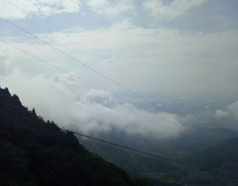 因为爬衡山,带着六岁的孩子爬了七个小时,终于爬上去了,所以下山坐的索道,这可能是我坐过的最差的索道了,又破又旧还脏,里面能装几十个人,还站着。