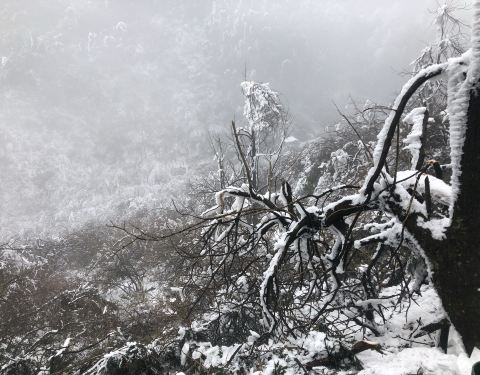 沿途可以看看周围的美丽景色。 冰雪天气上山的装备:草鞋,或冰抓、登山杖、帽子、手套、围巾