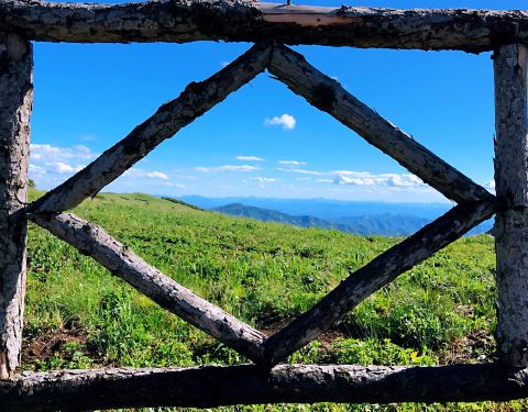 夏天主要看高山草甸,最佳观景点在马䓝山顶处。南门下去后一颗九龙盘杨树很奇特