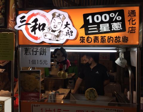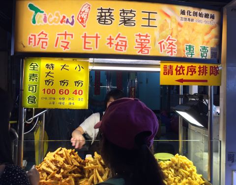 通化街夜市,小吃攤多樣個個有特色。 小米甜甜圈、宜蘭三星蔥餅、魷霸子烤大魷魚、冠軍剪刀雞蛋糕、蕃薯王脆皮甘梅薯、還有水果攤上的鳥梨、芒果青、芋頭冰、現打果汁吧消暑,還可以射汽球消消氣。 所以我善歡晚上喜歡穿上人字托,挽著老公手逛逛夜市。