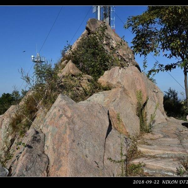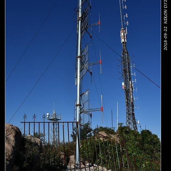 正如我想象的一样,这山顶上啥都没有,只有一堆大石头,方圆不过几平方米。绕过这堆大石头,后面通往电视塔的小路被铁栅栏封死了。
