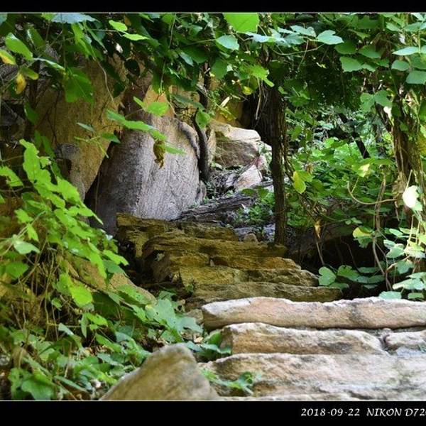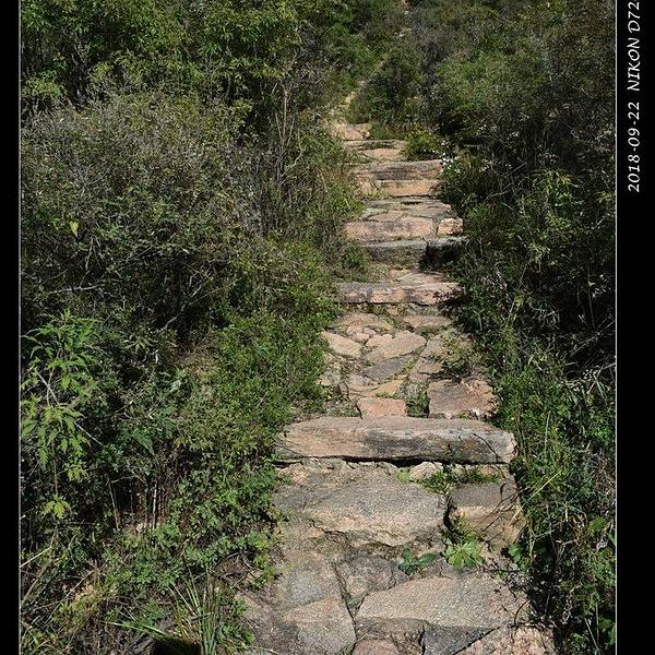 过了“清凉谷”之后,爬升的坡度加大了,台阶也变得陡峭起来。好在这里是“葛藤沟”,头顶都是密密的藤条树叶,所以一点也晒不着,即使爬山很累,但身体上并不是大汗淋漓那种黏糊糊的感觉,还不错!