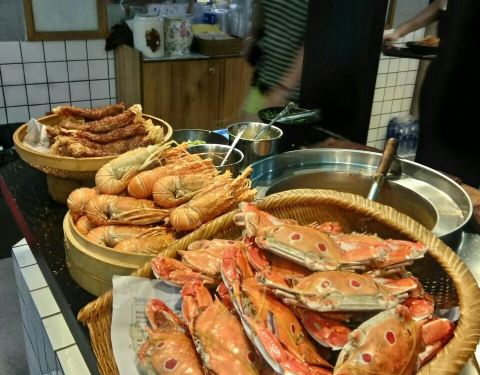 很多美食和很多品牌服装的步行街,很多海鲜,不过螃蟹不新鲜,味道太次了,其他还好,想吃真正的灌汤包的,据说现做的,要蒸40分钟,卖家不卖了,所以没吃着,全国各地的特色美食都可以吃到,就是价格特别贵,比...
