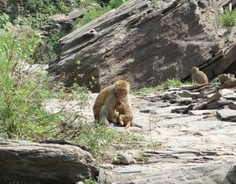 地方比较难找,开车转山路近20公里,在深山里面,和十渡知名几个景点方向不同。这里是山里散养的些猴子,在原生态环境下,猴子还怕人,不是峨眉山那种跟游客很熟的,不敢靠近游客。我们去那天没有其他游客,山谷里很空旷,猴子不多,回来就一个不见了。