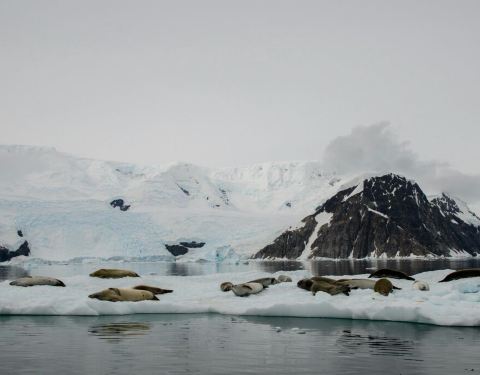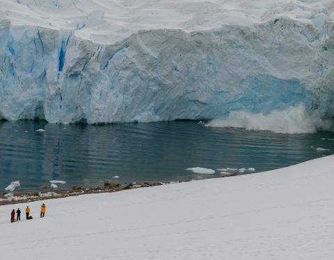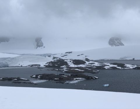 而景色是冰川冰瀑和漂流的冰块,一片冰雪的世界。大型船舶可以停泊输送给养