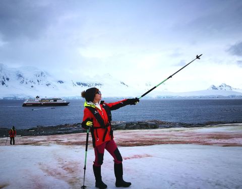 南极对外开放的登陆点还是不少,不过各个公司联系的地方不一样,还要根据天气情况调整,这个地方据说是英国的一个指挥基地,如今改为南极历史遗迹,有很多企鹅,还有粉红色的冰雪~那都是 [便便] 染成了这个颜色[...