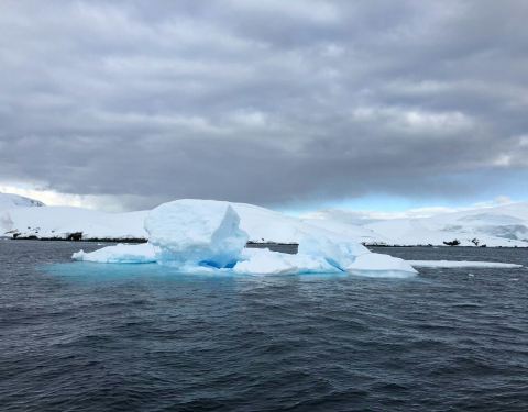 南设得兰群岛是南极洲中部地区的一群岛屿,这里洋面上漂浮着许多冰山,都呈现出一种幽幽的蓝色,十分...
