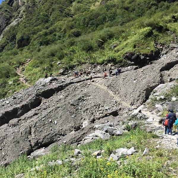 ...错过了一路的好风景,回程 下撤终于有机会一览雪山环绕的山谷景色, 虽然雪线有点高,但是依然壮美我们原本的计划是当天上ABC并下撤到Bamboo, 本来还算轻松的路线,却因为没有提前预定住宿而悲剧了